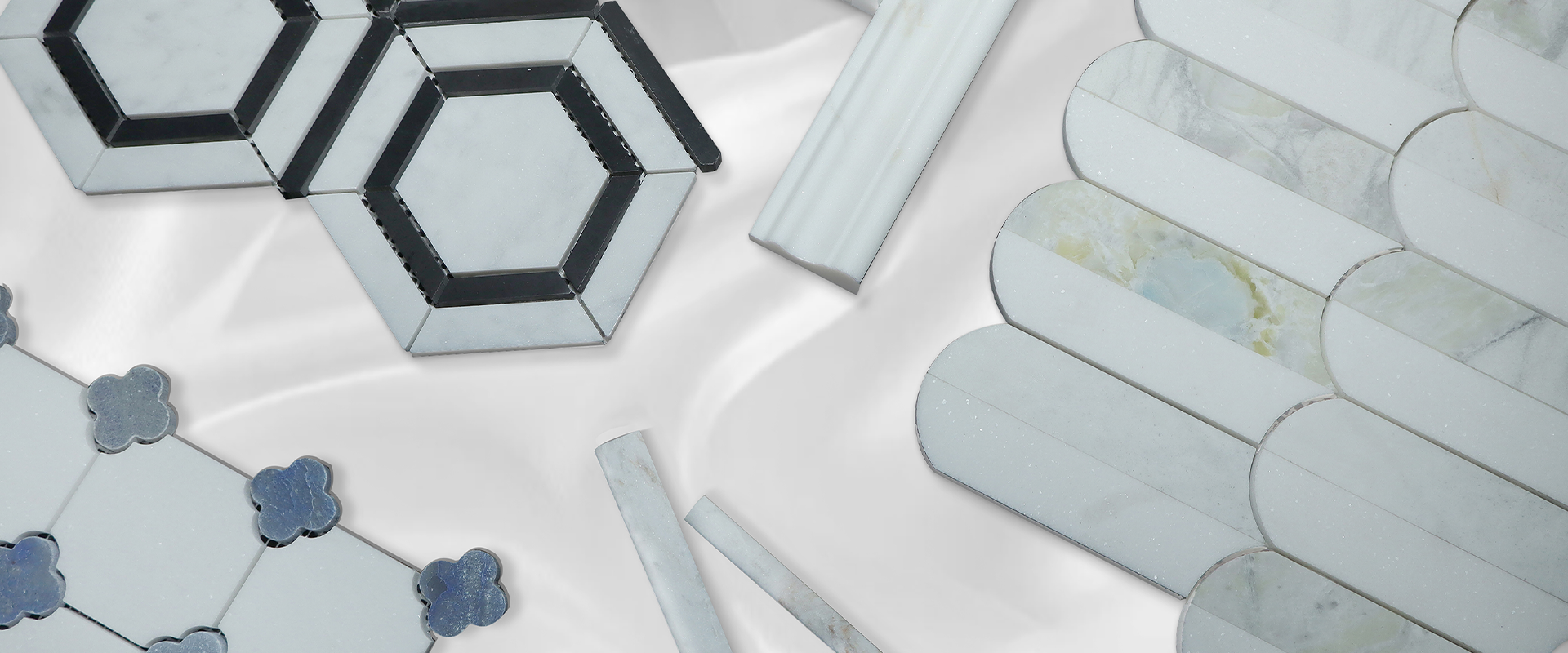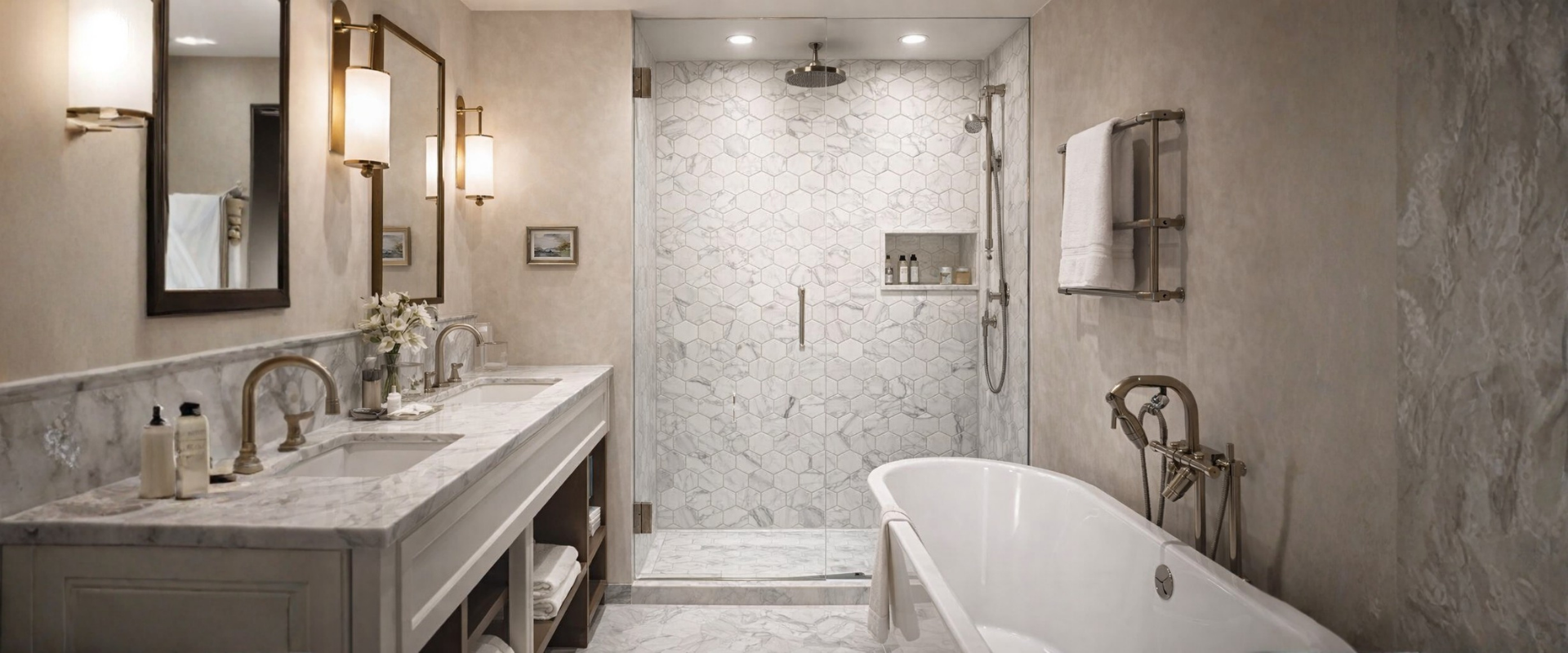 Elegant marble mosaics for contemporary bathroom spaces.