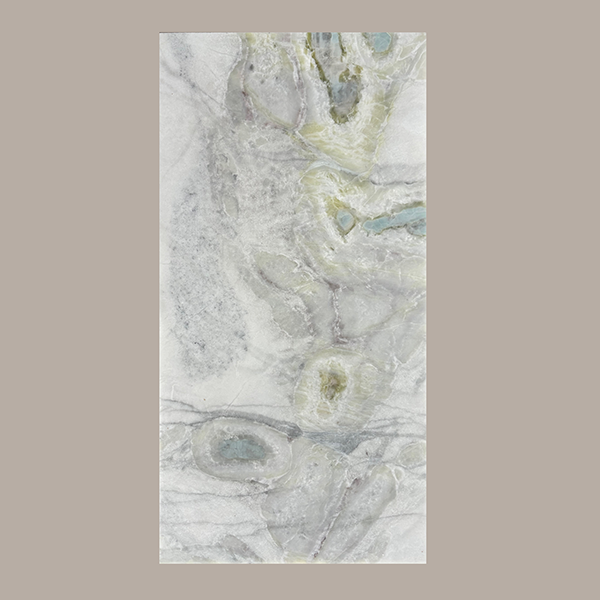 This marble from China features unique and beautiful veining, offering exceptional decorative value. Its base color is grayish-white, adorned with lively blue-green speckles that resemble natural splashes of paint or twinkling stars in the night sky, creating a mysterious and elegant impression. Each piece of marble is one-of-a-kind, like a carefully crafted work of art by nature.