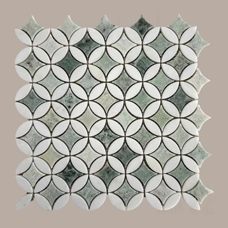 This pattern natural marble mosaic is an ideal decorative material for modern homes, commercial spaces, and public areas. Whether used in kitchens, bathrooms, living rooms, or offices, it brings a unique aesthetic and a touch of style to your space. Its classic design and natural stone texture allow it to seamlessly blend with various interior styles.