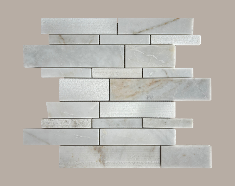 This marble mosaic takes pure white as the base color, with warm - toned textures such as light brown distributed naturally, just like artistic strokes left by nature inadvertently, and each piece has a unique charm. In terms of design, long and short strip - shaped stones are used for scattered splicing, and some stone surfaces have delicate striped textures, breaking the conventional sense of regularity. It not only retains the natural texture and elegant temperament of marble but also adds agility and layering. The overall visual effect is simple yet exquisite, and it can be used for wall, floor and other decorations to inject a fresh, elegant and design - sense atmosphere into the space.