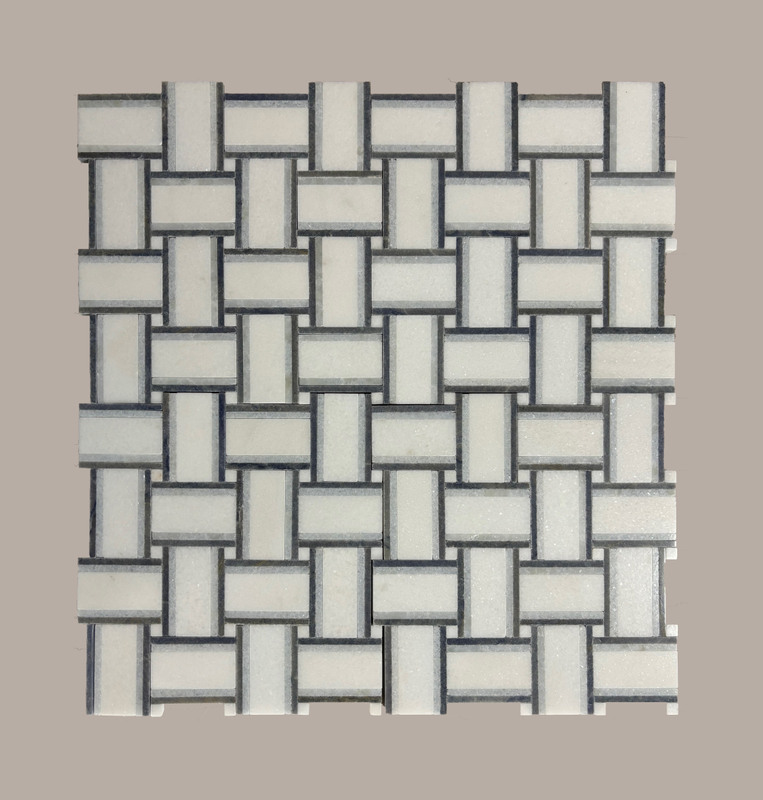 This is a marble mosaic in a woven - texture style. The main color is a soft off - white, giving people a warm and pure feeling. Through ingenious arrangement, it creates a pattern effect similar to weaving. Each marble strip is neatly interlaced, with subtle dark lines spacing between the strips, adding layers and a three - dimensional sense to the pattern. The overall design is simple yet refined, with both the warm texture of marble itself and a unique artistic beauty and fashion atmosphere due to the special woven shape.